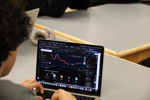 Antonio Vargas ’30 investigates stocks at Finance Club.