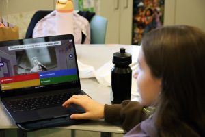 Gloria Laurenza ’30 competes in a Kahoot! in Italian Culture Club.